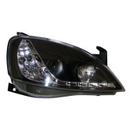 VW T4 CARAVELLE 90-97, TRANSPORTER 90-03 BLACK DRL HEADLIGHTS (SHORT NOSE)